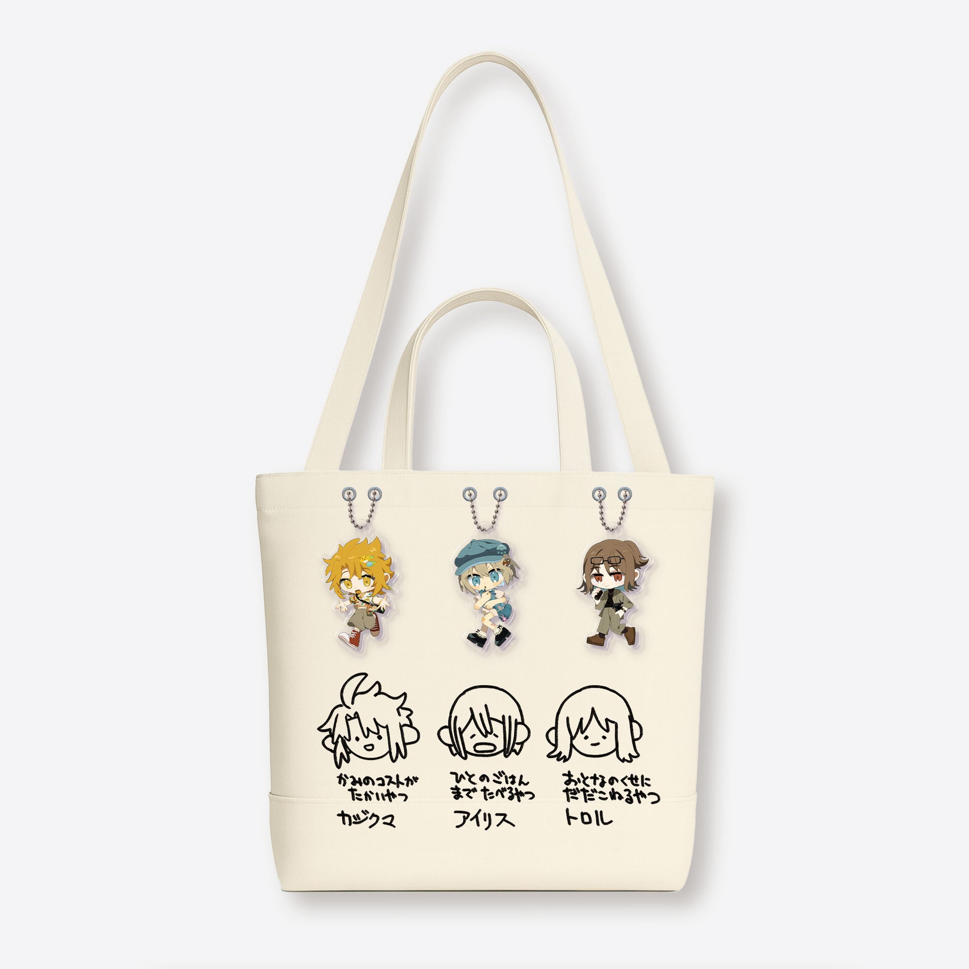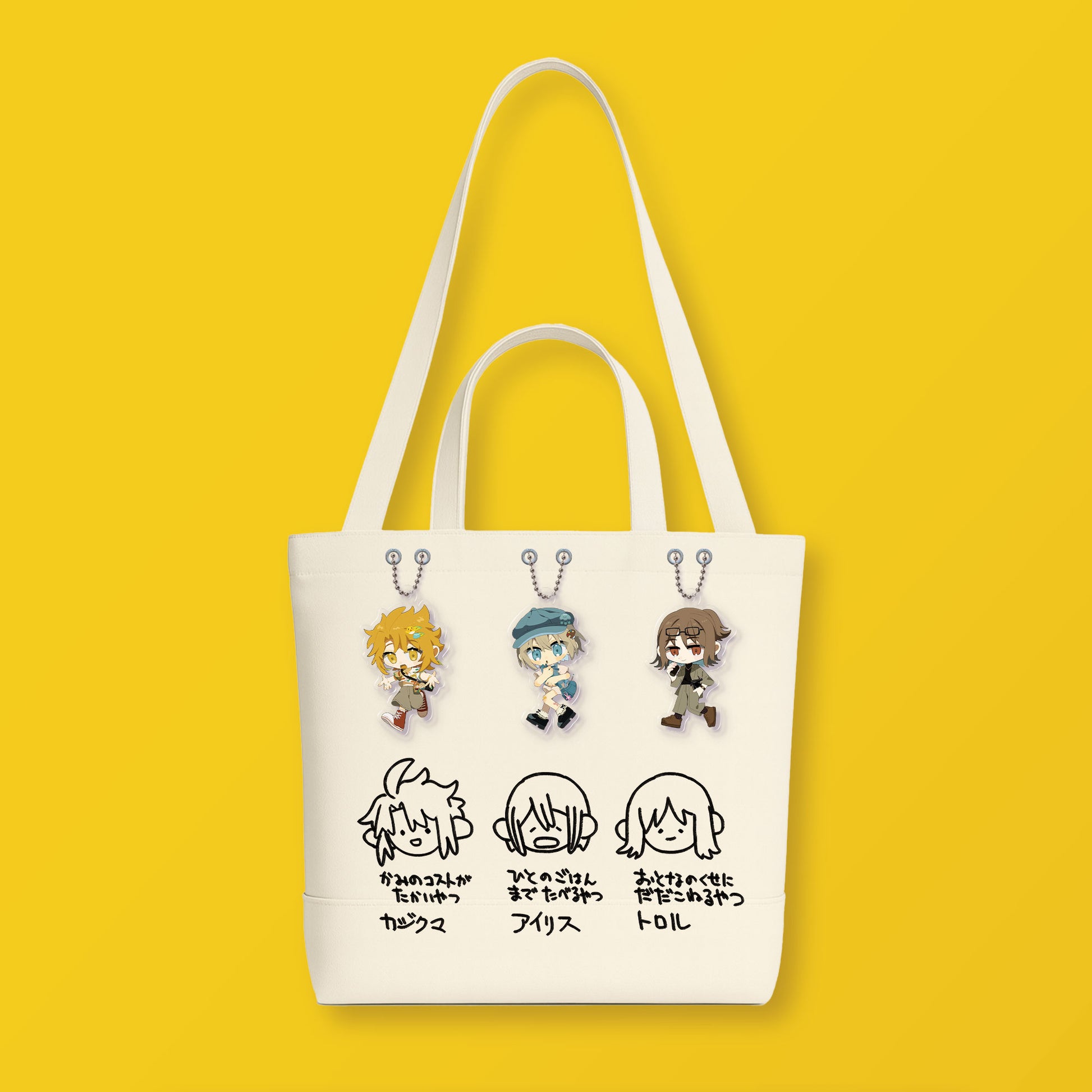 ゆる~いひとこととゆる~い3人の顔がプリントされているトート。