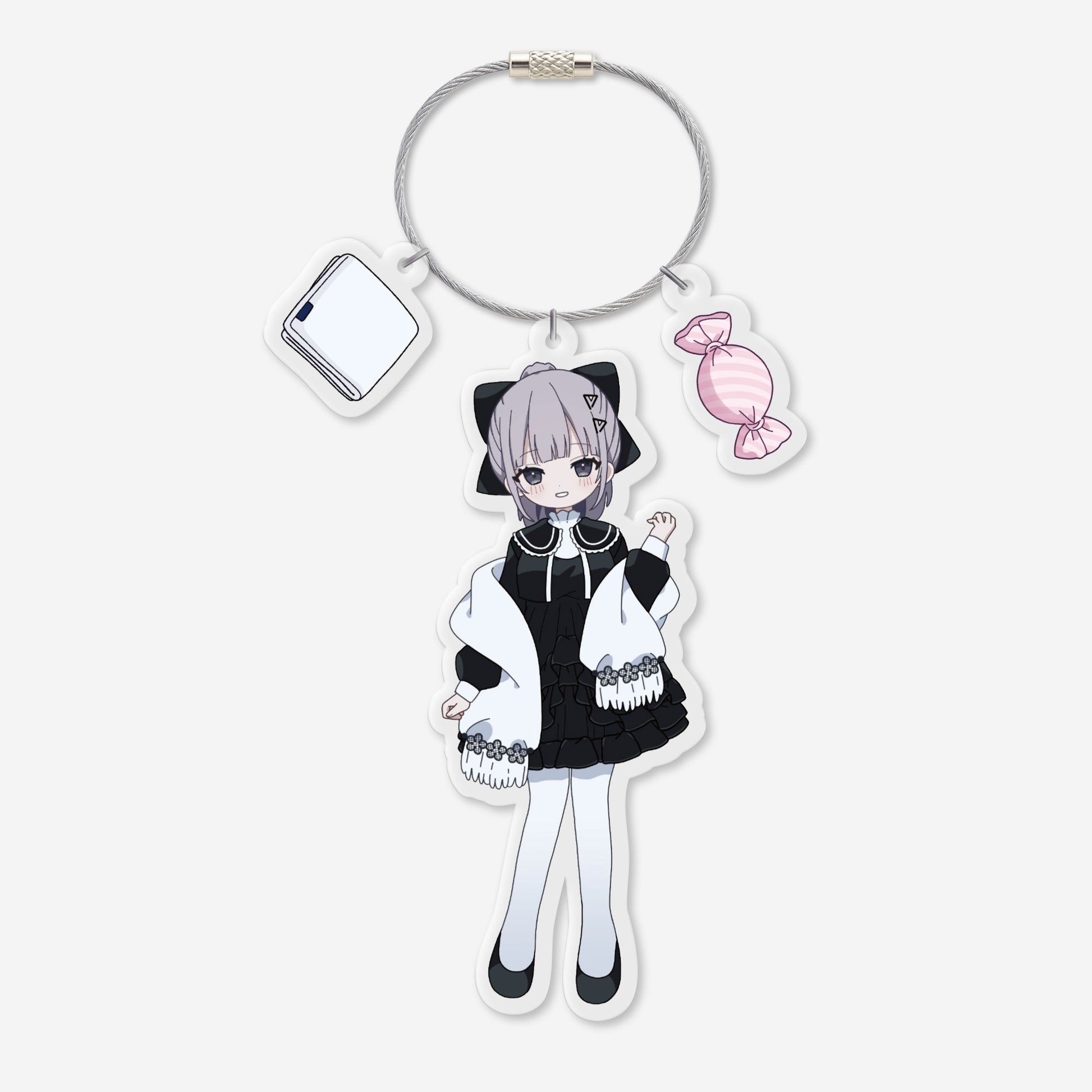 おしゃれを楽しむ琴葉+作中アイテムのアクリルキーホルダーです。一緒のおでかけにどうぞ。
